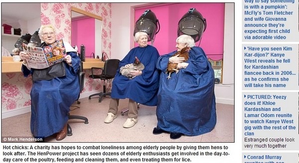 居家養雞的概念,自2008年開始流行於英國,數目突破6萬隻,動機由一開始受新鮮雞蛋所吸引,逐漸加入寵物陪伴等情感因素。2012年英國慈善機構「平等藝術」甚至建議退休老人養母雞當寵物。不少老人因而活動身體,增加與他人的互動,和同好分享心得,為生活增添了色彩。