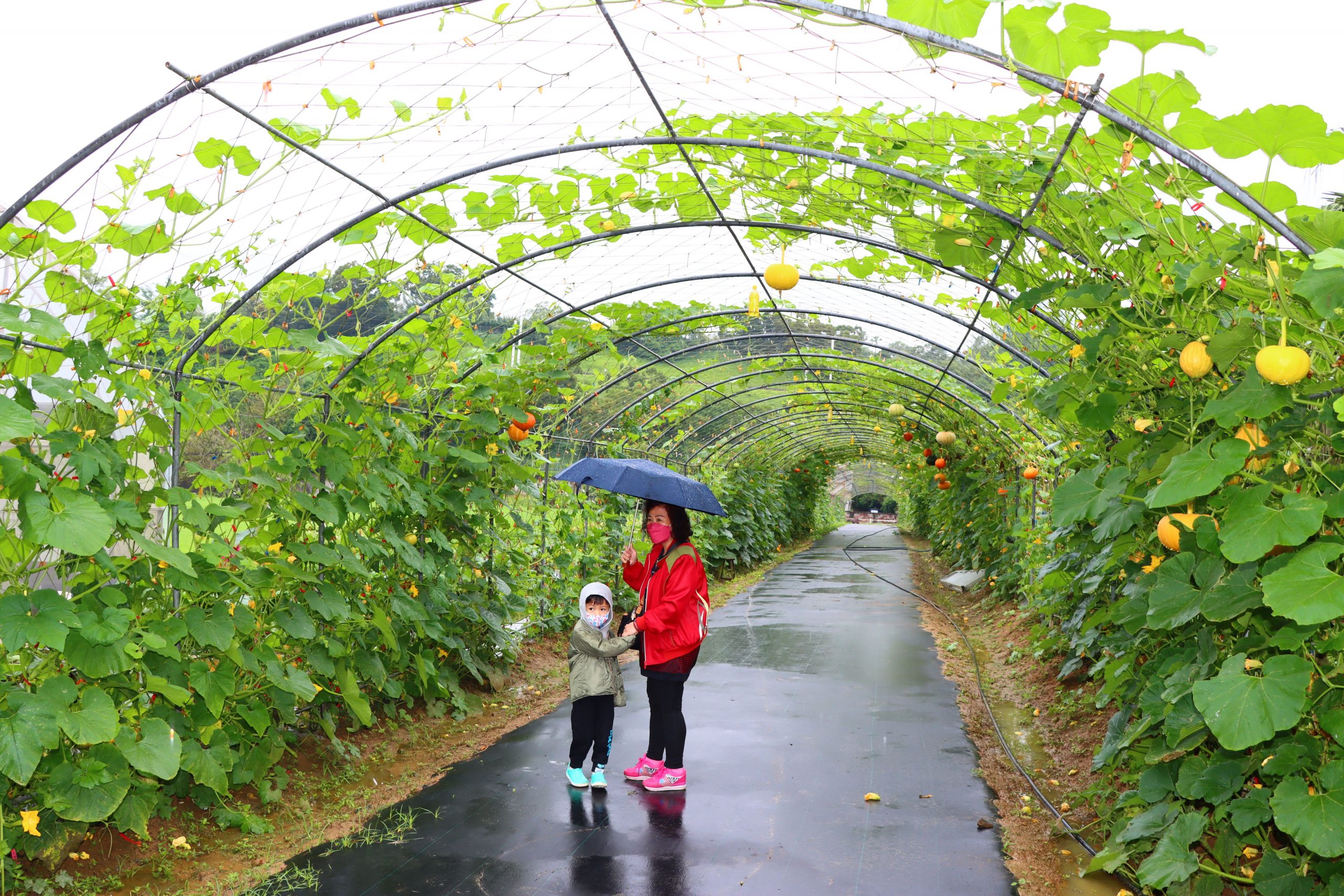 鄉農會在牛奶故鄉架設200公尺長的南瓜隧道,展示琳瑯滿目的造型南瓜,副縣長鄧桂菊參觀南瓜園栽植的大型南瓜,肯定栽種的品質,同時推荐農會家政班製作的南瓜創新料理南瓜九層涼糕、南瓜菜包、南瓜飯、南瓜糕、南瓜米蛋糕等都營養美味。
