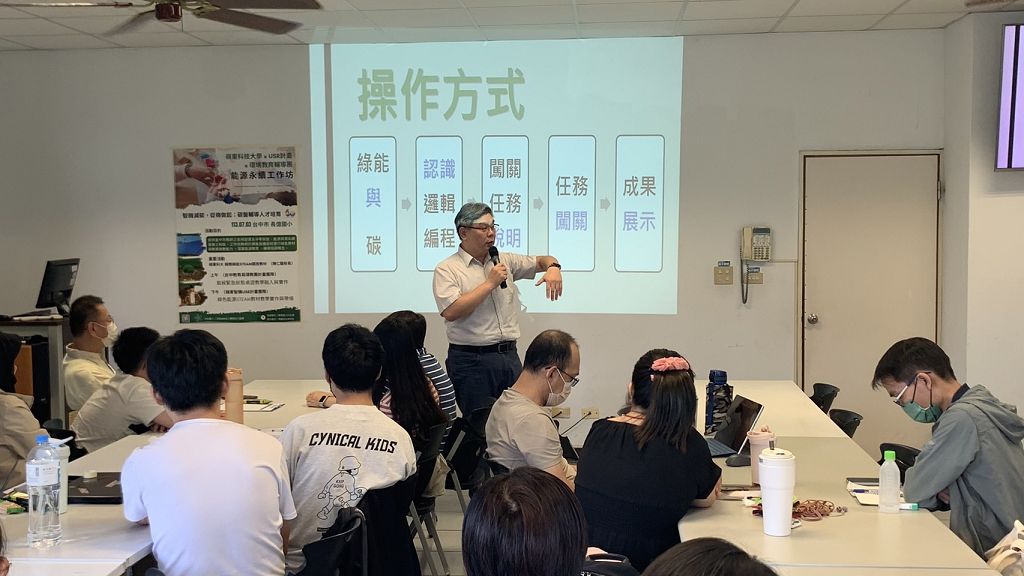 嶺東科大執行教育部第三期大學社會實踐責任計畫,由資訊科技系沈志昌主任主持之「智機減碳,從嶺做起:碳盤輔導人才培育計畫」,透過計畫內師生以STEAM教學經驗融合綠能低碳議題設計之「綠能STEAM開放教材」,結合邏輯編程機器人基礎,以闖關桌遊形式設計,讓參與活動學生得以訓練機器人編程邏輯能力以及綠色能源應用議題,進而從中學習建立環境關懷概念。