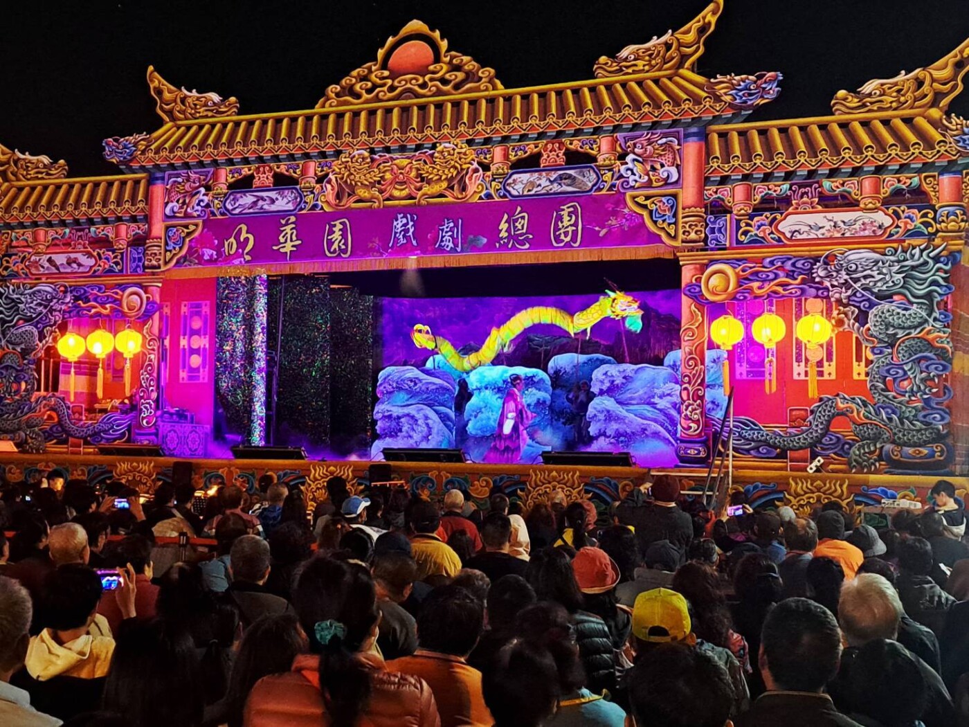 明華園自1929年創團以來,長期投入推動歌仔戲及台灣戲曲文化,曾獲國家文藝獎等多項殊榮,足跡遍及國內外。此次演出的《蓬萊女神何仙姑傳奇》以唐朝為背景,講述花匠張四郎與女帝武則天之間的禁忌愛戀。劇情融合懸疑、幽默與深層寓意,現場掌聲不斷,觀眾情緒被深深帶動。