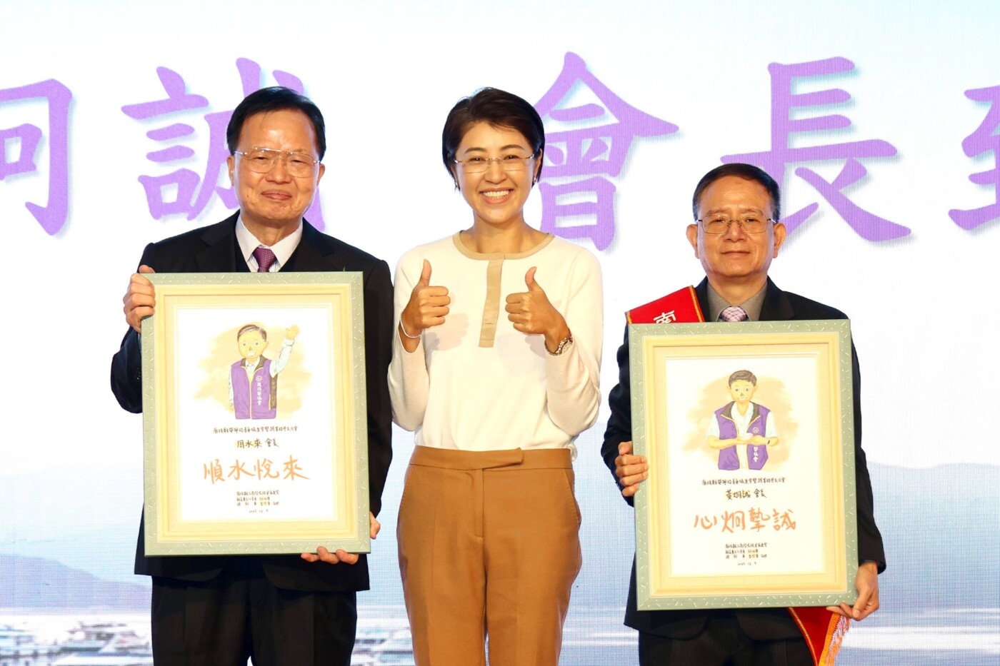 南投縣長 許淑華 出席致意表示,周水來會長在一年任期內主動協助企業面對關稅、匯率等衝擊,並透過南投縣工業策進會爭取資源,協助中小企業在變動環境中穩健成長,表現「可圈可點」。她強調,榮指員協會是縣府重要夥伴,未來將持續做企業最佳後盾,打造更友善的營運與勞動環境。