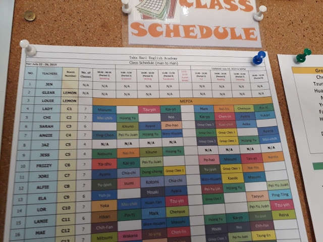 星期一是TAKA HARI校區的新生入學考,每一堂課老師都會依聽、說、讀、寫等不同的課程設計,進行測驗。