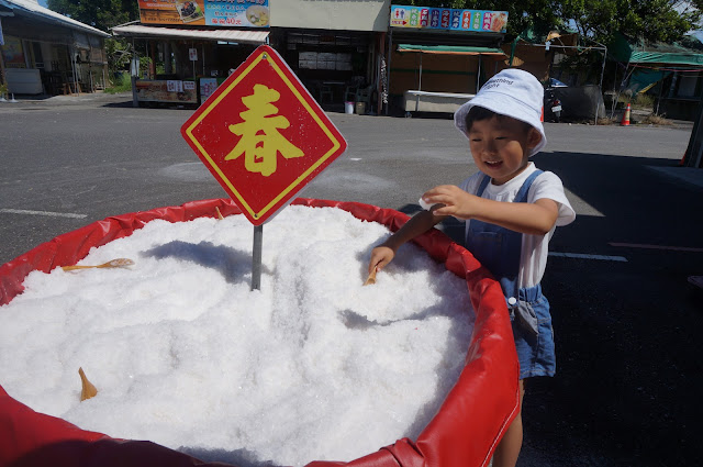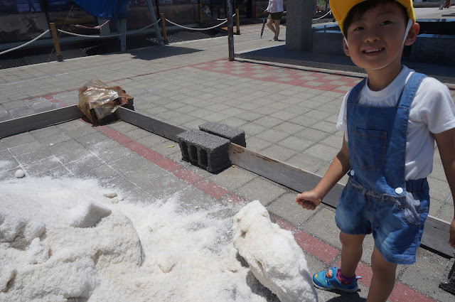 鹽田旁還有一處鹽沙坑,好多小朋友在這裡遊玩,沙和鹽挖起來的感覺不同,小朋友也可以在這裡得到不同的體驗經驗。