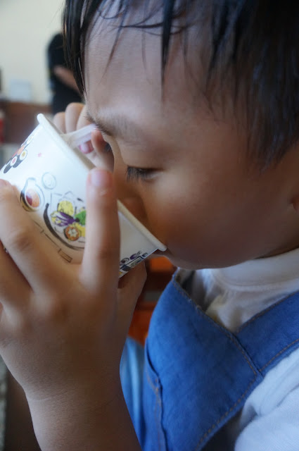 自製的豆花,口感像豆腐細緻軟嫩,美味又健康,加入配料粉圓或粉角,大大消暑啊!