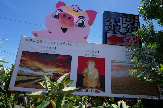 [豬母娘娘廟]全台唯一侍奉豬小姐的廟宇~豬母娘娘廟,導遊講述了豬母娘娘廟的故事,古時候有一隻豬母逃離了屠宰場,卻不幸落海溺斃,村莊發生很多不好的事,經興安宮神明指示蓋廟,才蓋了豬母娘娘廟。