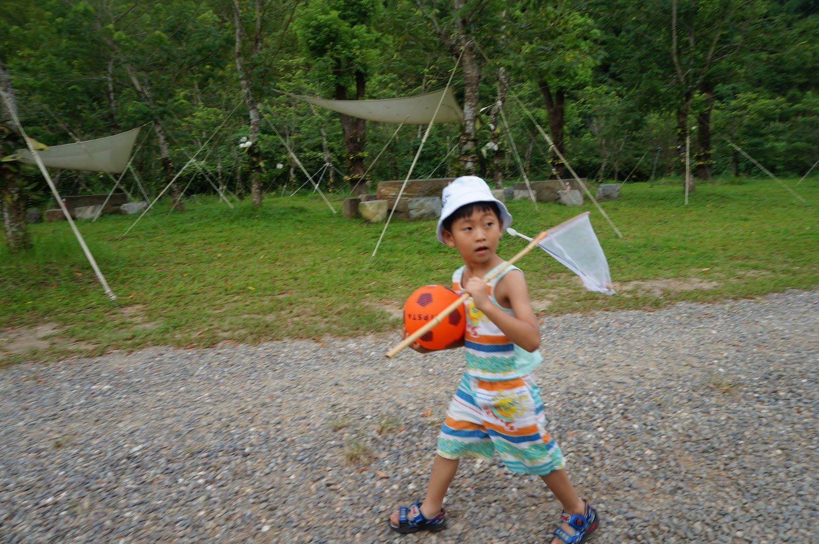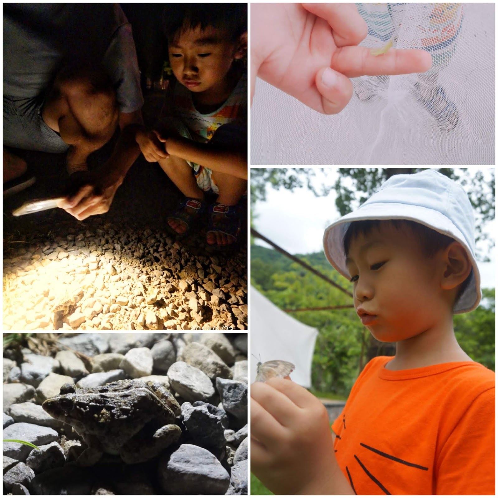 吃飽喝足後,準備返回蝶舞澗帳篷休息啦!這樣來來回回,屎蛋發現了好多生物,有青蛙、蚱蜢、蝴蝶,屎蛋這都市小子,自然而然學到了好多書本看到自然生態。