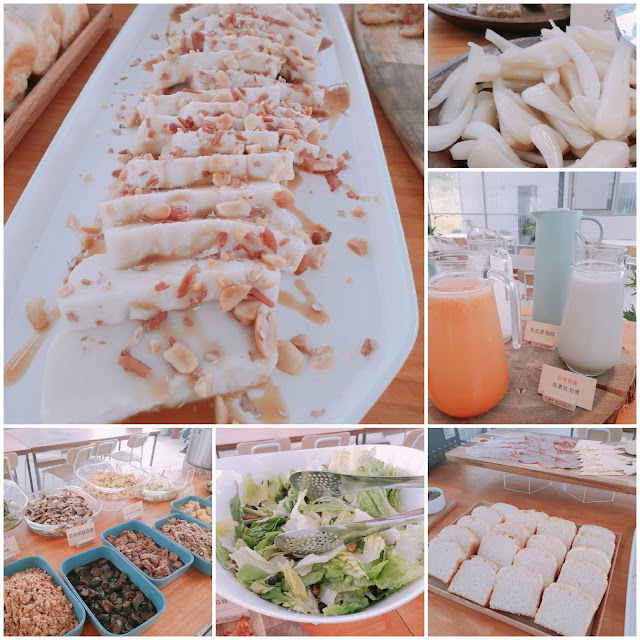 蝶舞澗的早餐好豐盛喔!木瓜粄、糖醋漬蕗蕎、菜頭粿,都是手作客家風味的好滋味!