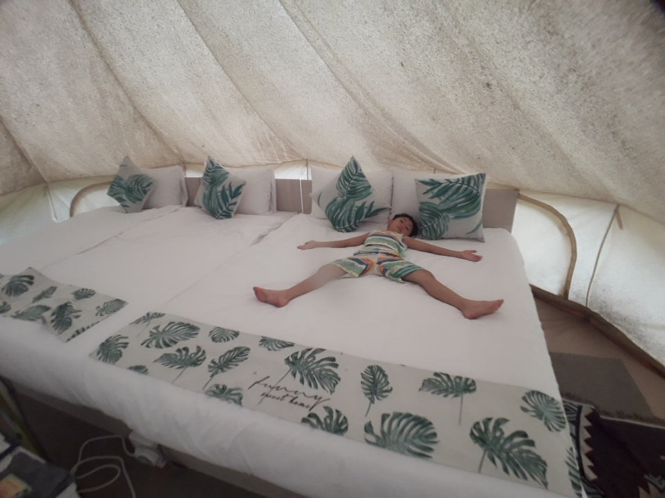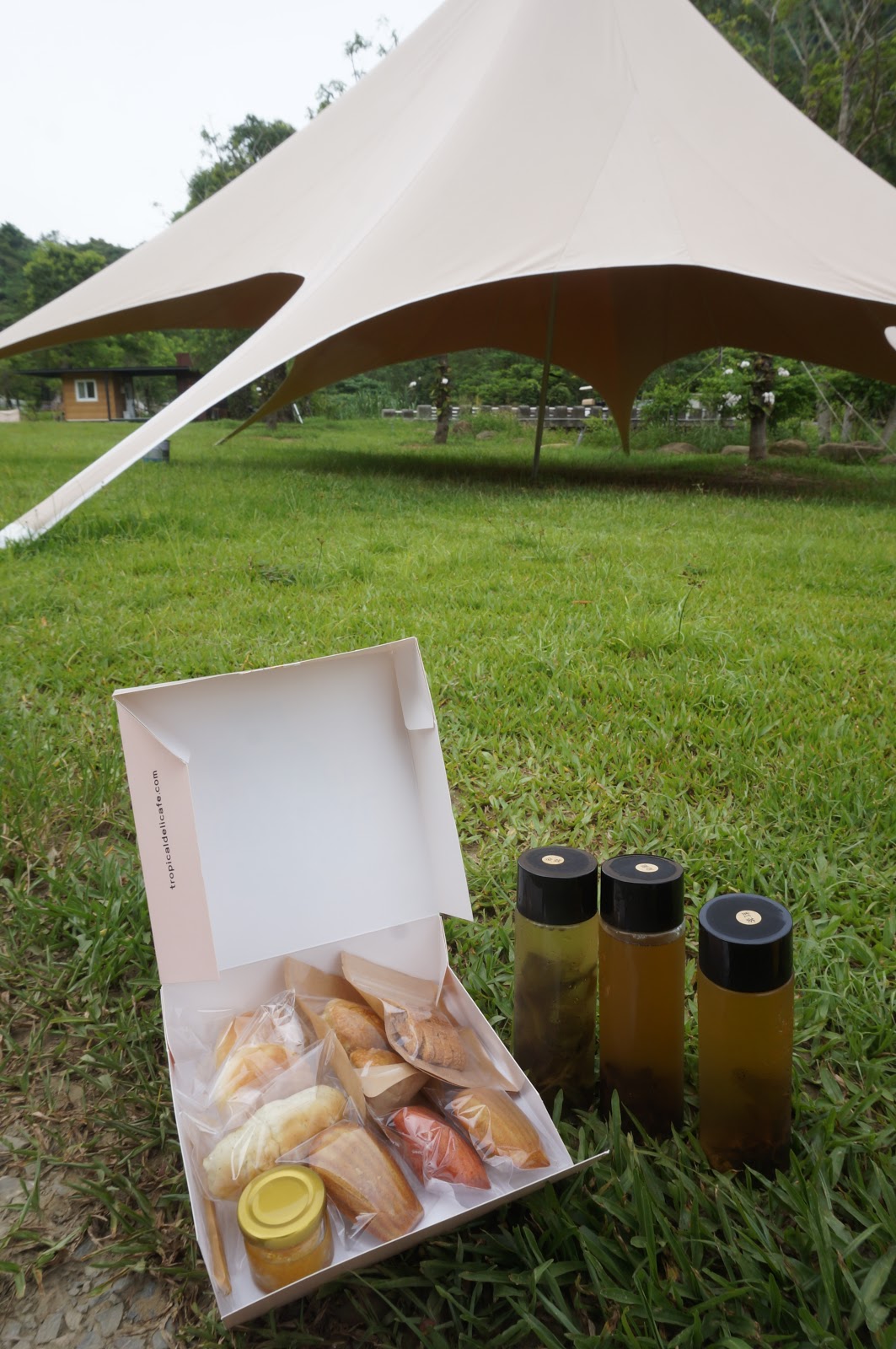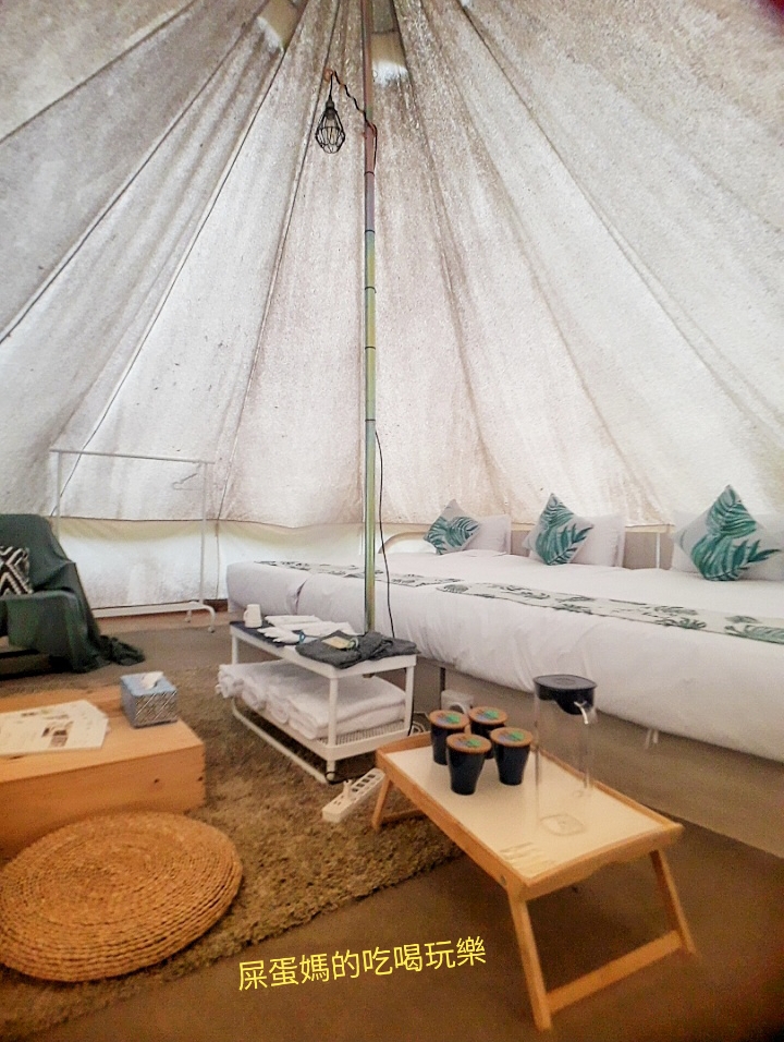 屎蛋媽訂購的套裝行程內容有豪華露營帳篷住宿2天1夜,一泊三食,含下午茶餐盒、套餐晚餐及隔天早餐。