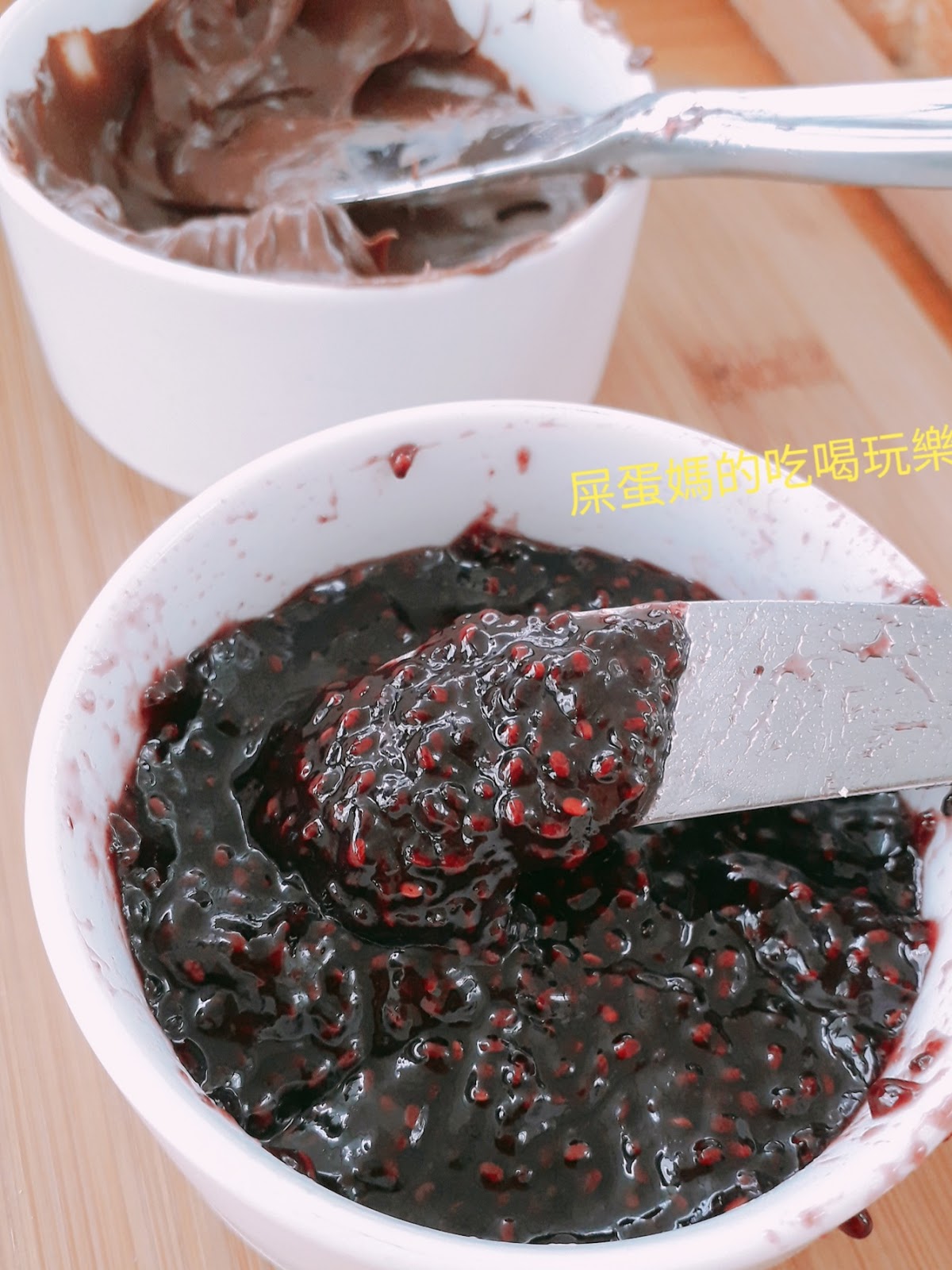 屎蛋媽最喜歡蔓越莓奇亞籽果醬,奇亞籽融入在果醬中,異常的搭配,一顆顆奇亞籽在口中爆開,抺在烤好的麵包上,口感真好!