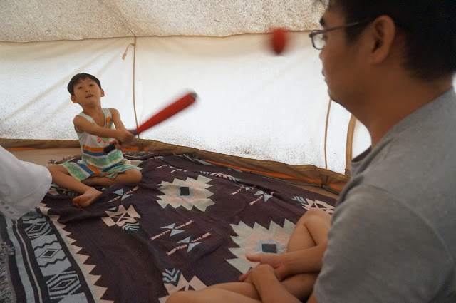 DIY 醃製高麗菜後,準備入住期待已久的豪華露營帳篷了!每個露營帳篷鑰匙都有自己的密碼,一定要記得喔!