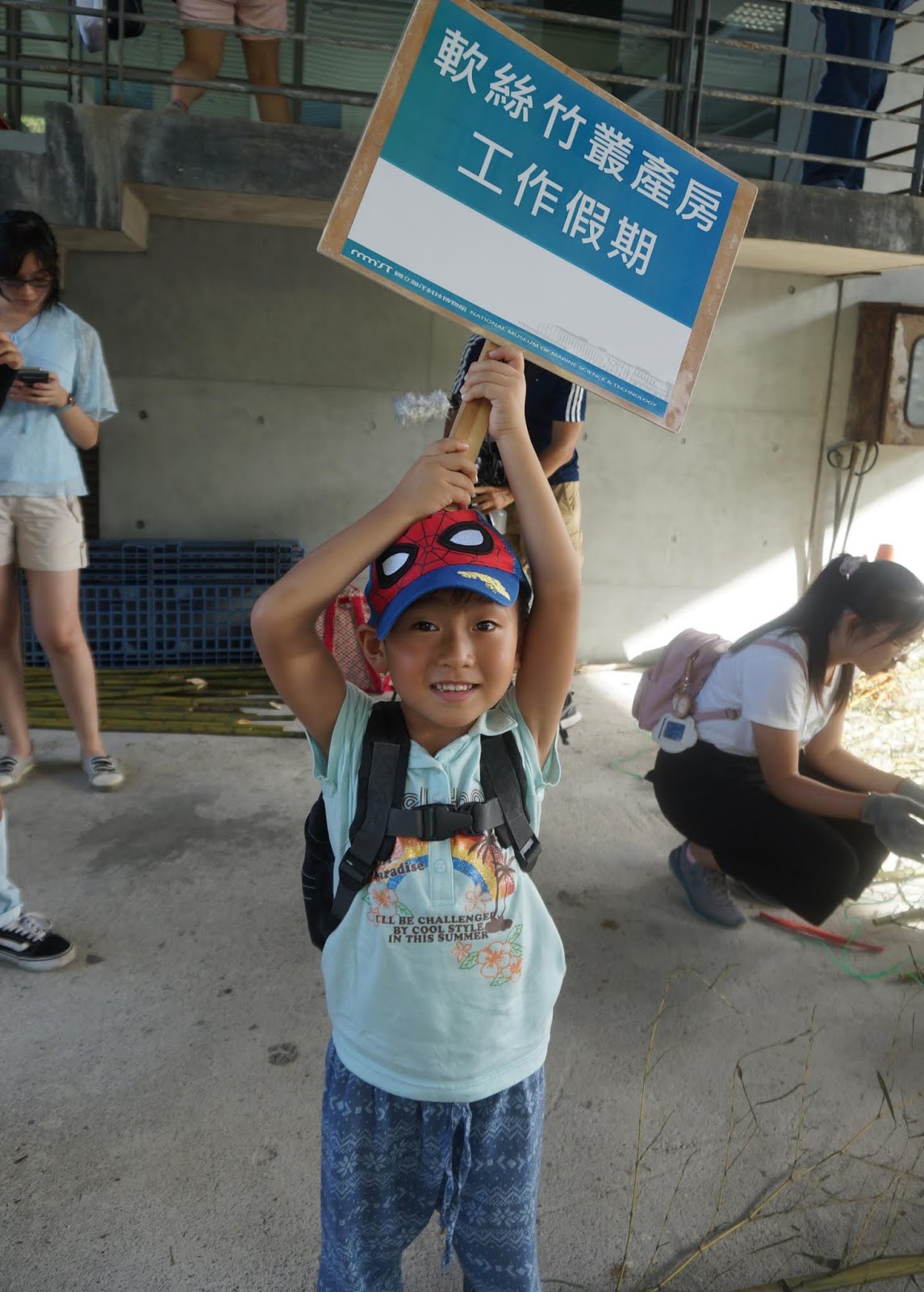 屎蛋正用力的鋸著竹子,將需要的竹葉留下,去除掉多餘的竹節,鋸下來的竹子剛好拿回家做竹筍炒肉絲!(開玩笑啦!屎蛋媽一向愛的教育,兒保法別找我蛤!)
