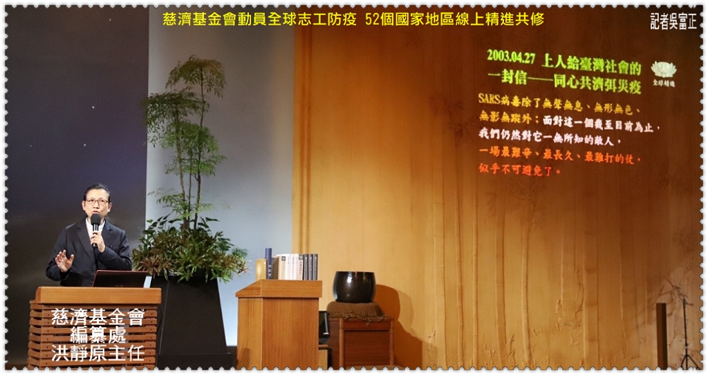 慈濟基金會編纂處洪靜原主任提及,回顧台灣從SARS至今年新冠病毒,期許大家用虔誠的心來祈禱,用愛和善念化解無形的災難,繼續謙卑虔誠戒慎提高警覺提倡齋戒。