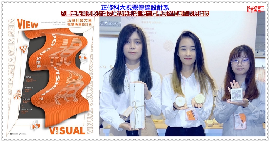 正修科大視覺傳達設計系第七屆畢業展成果「視角Do you see vision?」,象徵轉換角度思考、突破自我,以線條構成視覺深度,結合螢光橘強調不斷向前的熱忱,同學以自己的視角進行創作,展現四年學習成果;26組創作以錯視原理設計四大領域圖形多面向學習,轉換不同視角探索設計的可能性;校長龔瑞璋對畢業班同學獨特的創意深表肯定,有助日後踏入職場。