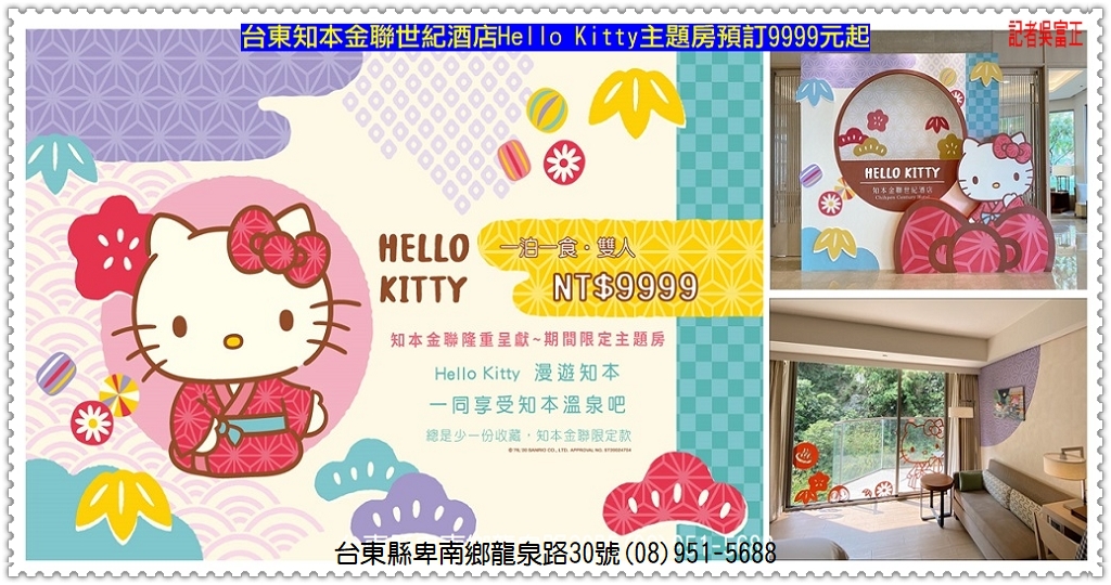 蜜月四季餐旅購有限公司旗下【知本金聯世紀酒店】與台灣三麗鷗合作推出「Hello Kitty主題房」,即日起接受預訂9999元起,5/31前入住可享贈送晚餐及台東火車站來回接駁。「Hello Kitty主題房」加入許多台東當地元素,房型涵蓋2~4人房型,能同時滿足家族旅遊或三五好友出遊。客房內彩繪掛畫及專屬設計的特製抱枕(非賣品),入住主題房還能享有酒店專屬的Hello Kitty期間限定紀念品。
