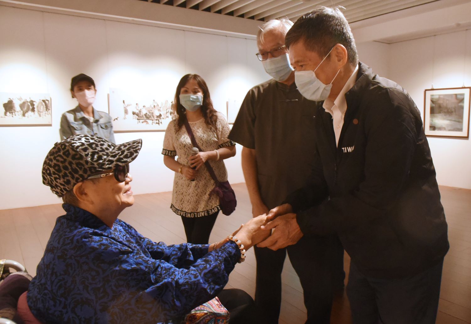 文化部李永得部長今(16)日蒞臨國父紀念館博愛藝廊參觀「最是人間─李奇茂水墨人物傳承紀念展」,親切問候李奇茂夫人張光正女士,並前往中山國家畫廊參觀「翰墨舞霞天—薛平南書法篆刻展」。