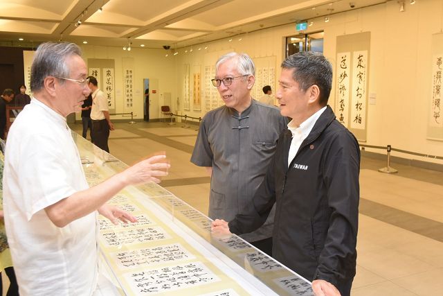 李永得部長隨後至中山國家畫廊參觀「翰墨舞霞天—薛平南書法篆刻展」,展出藝術家薛平南教授感謝李部長能在展出最後一天前來參觀,表示是壓軸貴賓。部長對薛平南教授氣勢磅礡書法作品印象深刻,亦稱讚國父紀念館近來在梁永斐館長的帶領之下,辦理許多很好的展覽及活動,期待國父紀念館未來在視覺藝術與表演藝術皆有更好表現。
