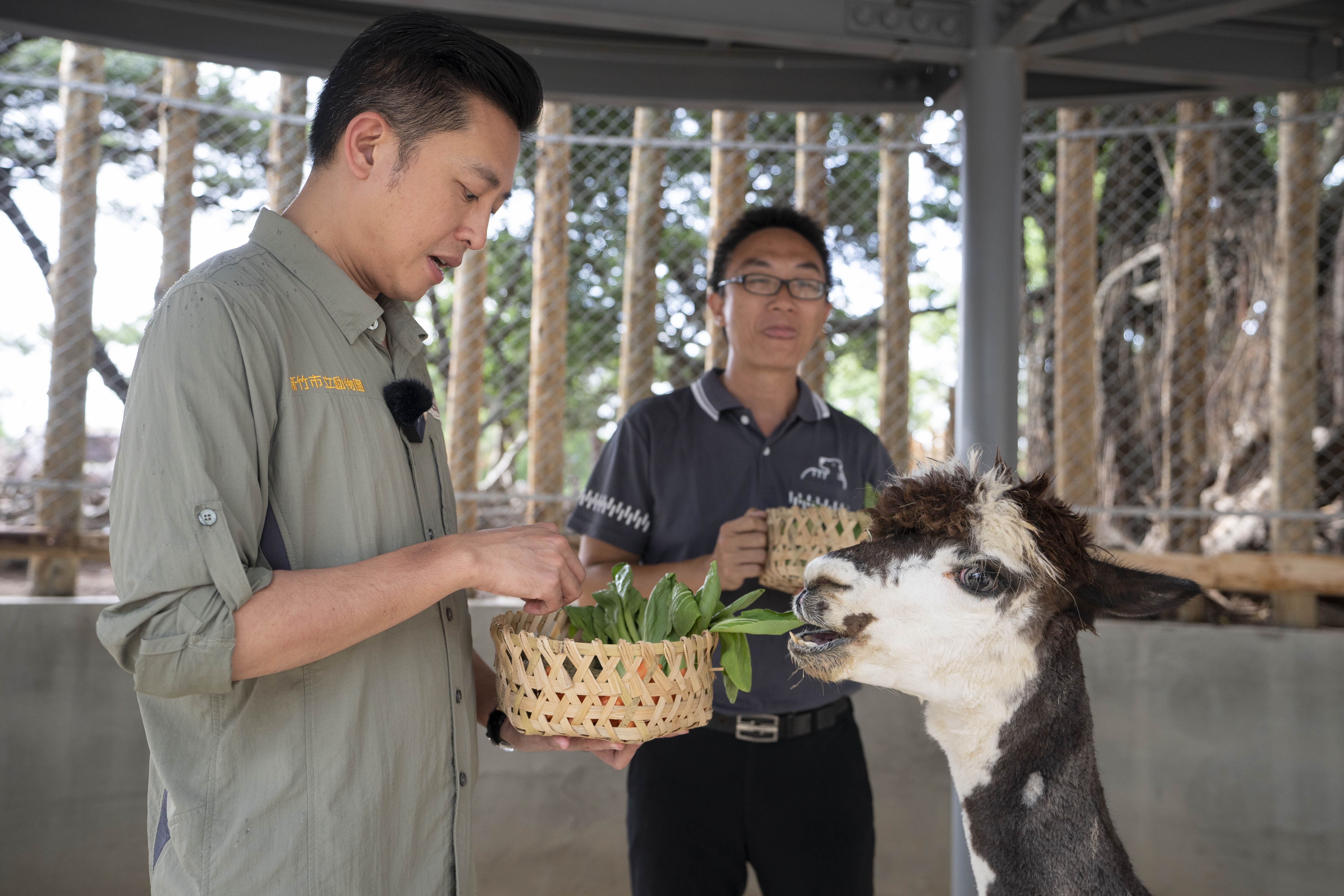 新竹市動物園有新動物夥伴了,就是遠從高雄壽山動物園來做客的兩隻羊駝「咖啡」與「牛奶」,他們經過幾個月適應後,準備上工,新竹市長林智堅今天前往「咖啡」與「牛奶」新家探視,還餵食紅蘿蔔、青江菜等點心,「咖啡」卻調皮向林智堅市長吐口水。