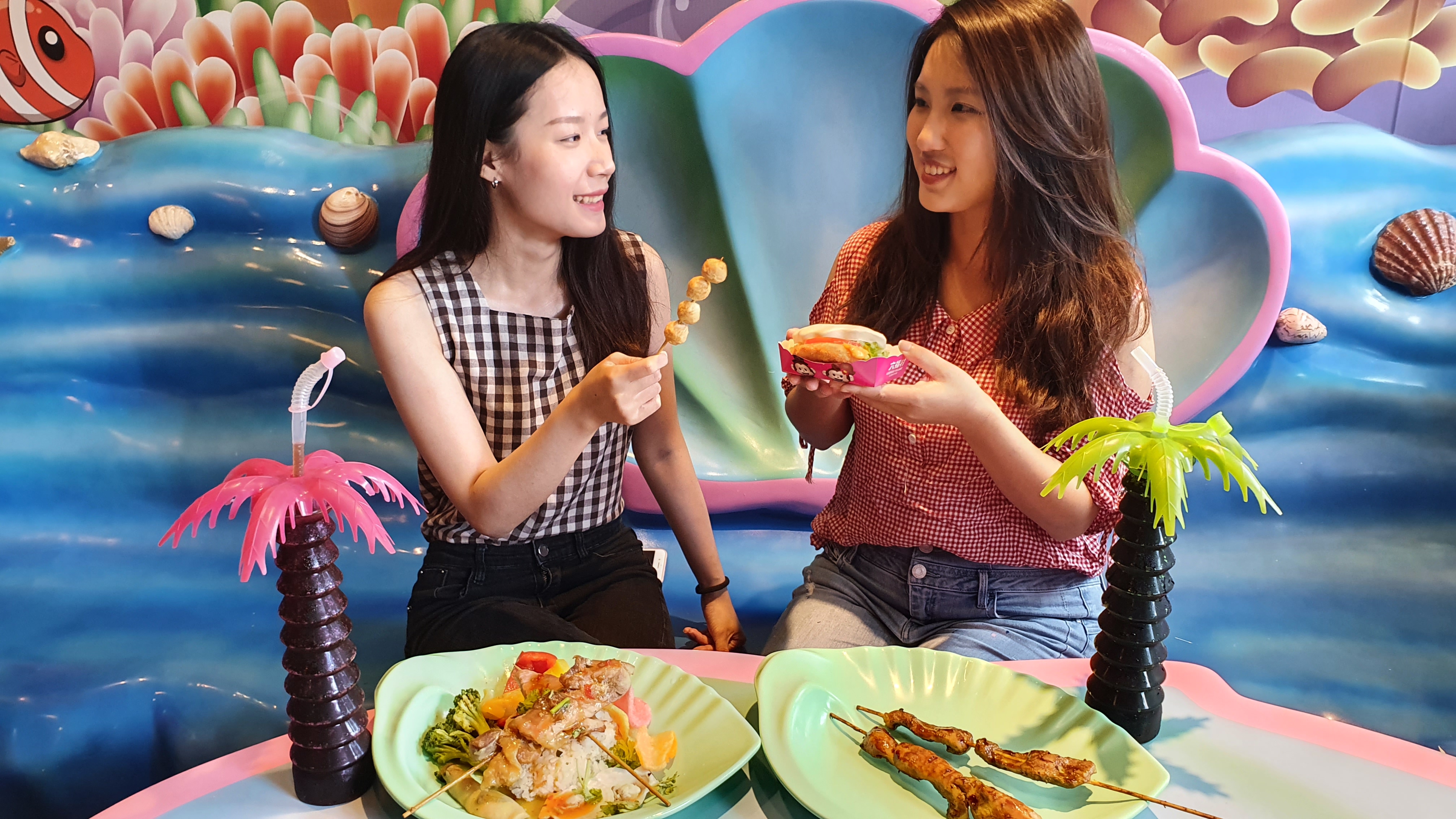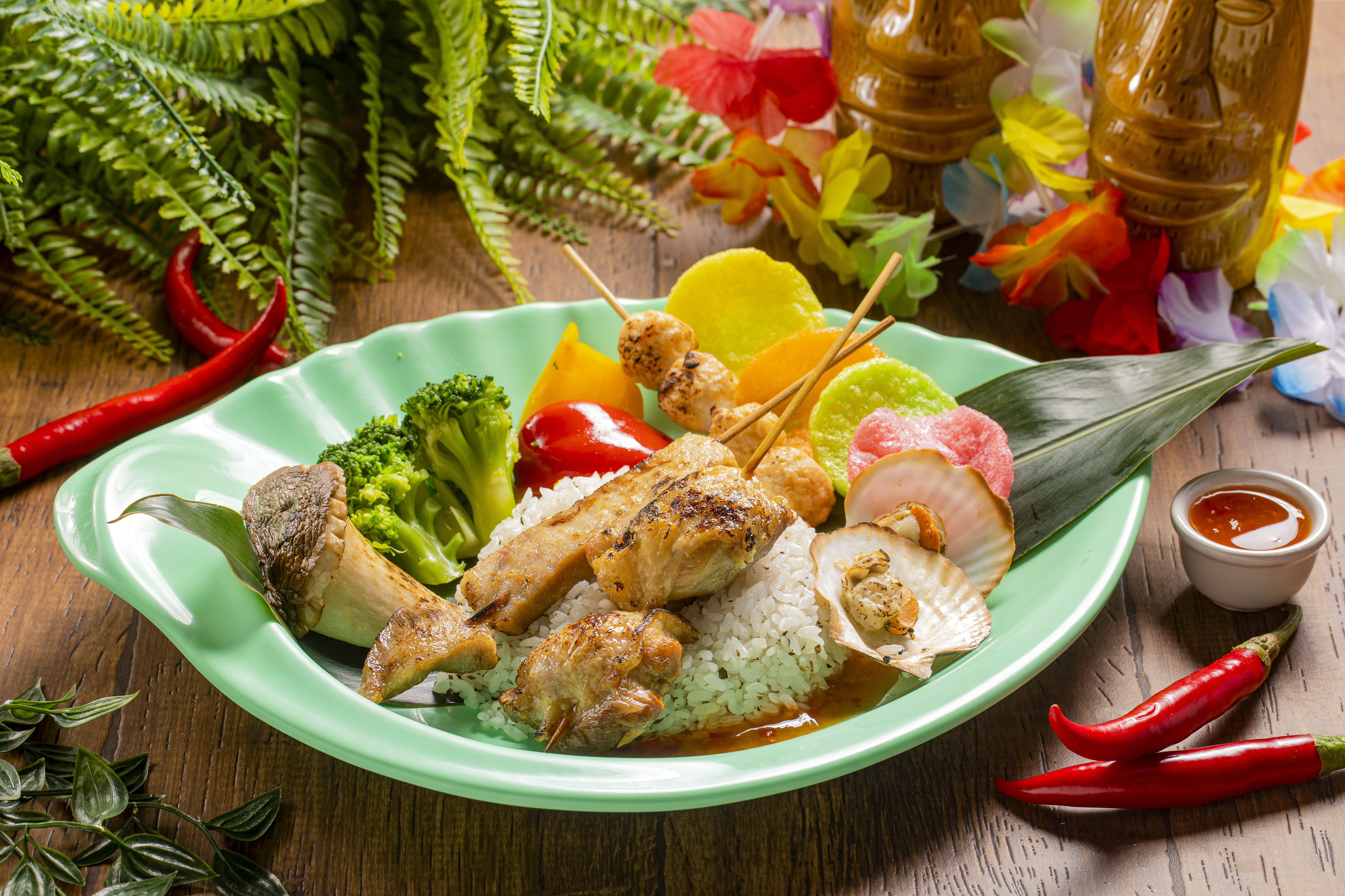 誰說到遊樂園只能玩樂?從經典雞排到套餐,六福村有許多隱藏版樂園美食等您來挖掘,位在園區美國大西部的雞排餐車尤其熱門,服務人員掌握黃金烹調時間,將一片片雞排炸得外酥內軟、飽滿juicy,成了園區餐車業績王,單月可售出逾2萬片雞排,來到六福村不吃不可。除此之外,今年暑假推出季節限定的火山野宴海陸套餐,以香烤松阪豬、雞肉串、扇貝組合,佐以泰式酸辣醬,讓整道料理層次提升,充滿新鮮海洋風味;南洋沙嗲串則是淋上獨家秘方手調醬,經過先醃後烤料理程序,讓肉串香氣撲鼻而來;海之霸貝殼堡則是以獨特貝殼造型麵包裹覆著新鮮炸蝦排,一口咬下立即感受蝦肉Q彈口感,多種熱門美食,來到遊樂園不吃不可!