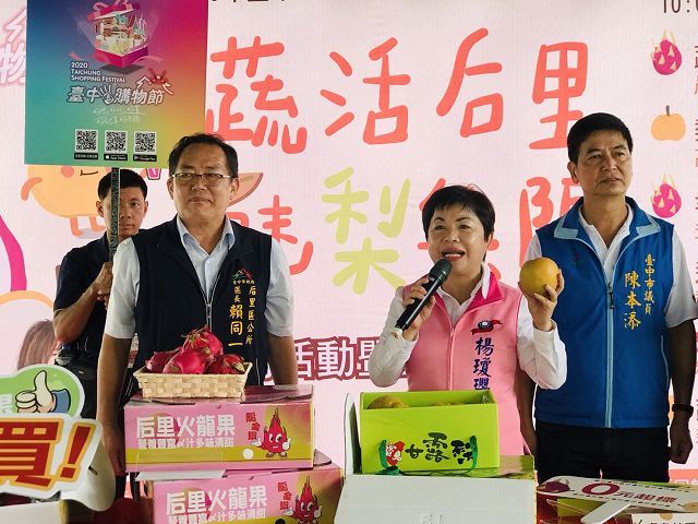 賴區長表示,十五、十六日兩天,后里蔬果產業文化活動『蔬活后里˙魅梨無限』將假月眉觀光糖廠舉,為了讓活動場地更熱鬧,特別邀請人氣歌手梁文音及吳申梅熱情演出,還有大朋友小朋友都喜歡的親子互動表演及在地優質表演團體接力演出;活動期間也會不定時推出水果、果汁、傳統米食品嚐,活動有吃、有買也有看,還有高接梨趣味競賽、紅龍果展示、蔬果創意DIY、幸運得主就是梨及各蔬果產銷班設立農特產品展售攤,其中『幸運得主就是梨』,民眾向攤位消費累積滿500元即可參加一次夾獎及抽獎活動,滿1000即可參加二次,機車、50吋液晶電視、平板電腦等多項好禮,活動精彩多元,歡迎市民朋友踴躍來后里參加蔬果產業文化活動及2020臺中五好購物節,一起選購新鮮又好吃的水果及探訪后里觀光景點。