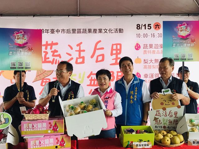 后里區生產的蔬果農特產品在國內響有極高知名度,九日將在草悟道舉辦促銷會,十五日起兩天在月眉觀光糖廠重舉行『蔬活后里˙魅梨無限』蔬果產業文化活動。區長賴同一表示,后里屬於亞熱帶季風氣候的範圍,氣溫及相對溼度都平均適當,每種農產品質都十分優質,在國內有口皆碑!屆時活動還有精彩表演,歡迎各界共襄盛舉。