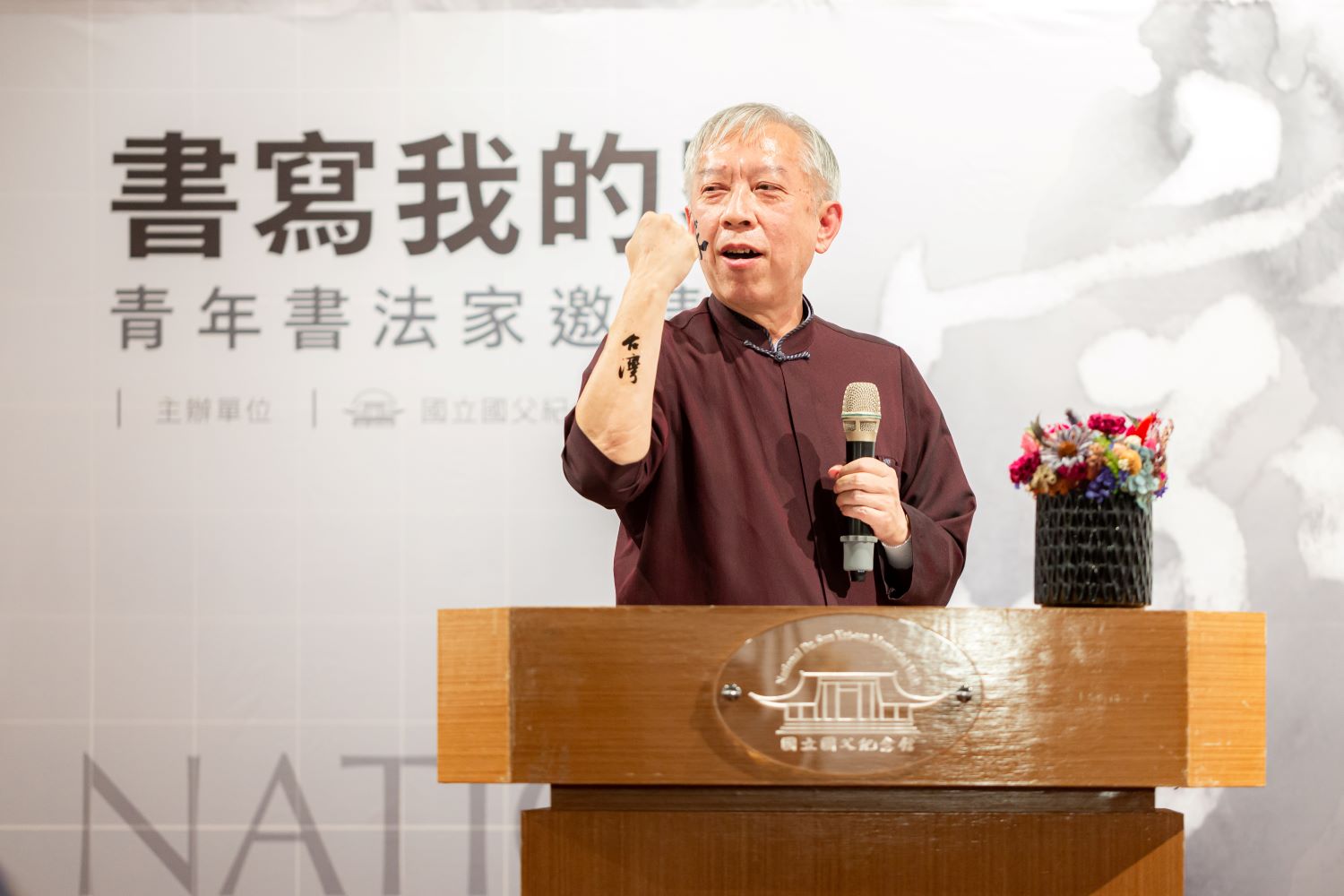 國父紀念館梁永斐館長致詞時表示,青年是國家的希望,這次以邀請展的規格辦理本展,就是希望能扶植新生代藝術家,讓年輕一輩從事創作者能多一個平台展示作品,增加曝光度,激勵他們持續創作,臺灣這塊藝術的土壤才能豐沃和生生不息。本次展覽有幾項特點,第一、由國父紀念館自行策劃,首次以青年書法家為主題策劃展覽,集結全臺青年書法家一起書寫臺灣的故事,其中16件是本館舉辦的中山青年藝術獎得獎者創作作品,12件是來自全臺各地獲獎無數的書寫好手。第二、空間活化:展覽於本館2樓東西廳展出,這是開館以來首次將此處作為展覽場域,展示書法作品。第三、多元的作品介紹:現場提供展品清冊及QRcode供參觀者查閱資料,並加上點字設計協助視障者認識作品。第四、首創紋身貼紙紀念品,從每位書法家挑選1款字句,共28款紋身貼紙,參觀的民眾只要參加FB按讚分享的活動,就有機會獲得限量紋身貼紙。第五、跨領域對話:舉辦「書法與文學的對話」論壇,邀請孫大川、黃宗義、李瑞騰、林榮森、蕭世瓊等書法家與文學家代表共同與談。此外,展覽開幕活動也注入年輕的活力,邀請年輕樂團(花福樂團),重新編曲演出國父紀念歌爵士版,讓全場有全新的感受。
