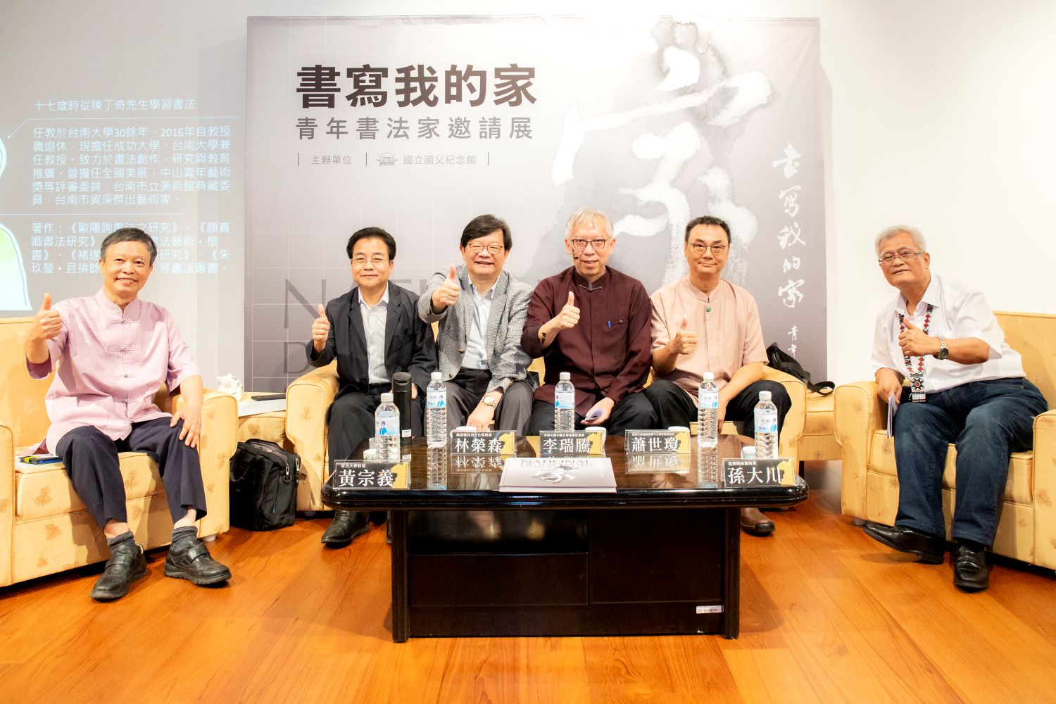 「書寫我的家 青年書法家邀請展」於9月5日至12月31日,在文化部所屬國立國父紀念館2樓東西廳展出。今(5)日上午11時舉行開幕式,監察院前副院長孫大川、黃宗義教授以及林思妤、江柏萱、林俊臣、吳弘鈞、於同生、吳啟林、方立權、陳昭坤、柯良志、施承佑、劉彥醇、鄭宇宏、劉廣毅、許志芳、李柏翰、林佳穎、王意淳、劉冠意、周欣慧、紀冠地、蕭彣睿、葉乙麟、陳俋佐、林穎生、張舜翔、尤振宇等全國各地年輕書法藝術家出席。
