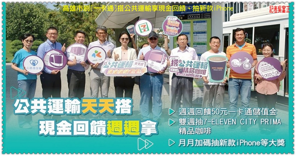 【高雄市府交通局】張淑娟局長表示,高雄市擁有全國最多元的公共運輸系統,包括公車、捷運、輕軌、渡輪、YouBike等,可以提供市民朋友多樣化的交通選擇。為落實「好生活」政策目標,今年特別推出「公共運輸天天搭」系列活動,邀請大家週一至週日天天刷「一卡通」搭乘本市公共運輸,週週拿50元一卡通儲值金。此外,更與統一超商合作,凡活動期間報名登錄「一卡通」卡號刷卡搭乘公共運具,每搭一次就能累積一次抽獎機會,可抽CITY PRIMA精品拿鐵、新款iPhone、千元禮券等大獎。只要活動參與人數達1萬人以上,交通局將代為捐贈3萬元給心路基金會,同時關懷弱勢團體做公益,歡迎大家天天搭,天天領好康做好事。