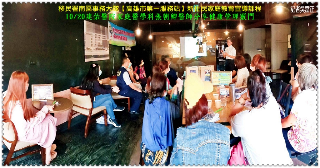 移民署南區事務大隊【高雄市第一服務站】10/20「新住民家庭教育宣導課程」邀請建佑醫院家庭醫學科張朝卿醫師分享健康管理的竅門,教導大家如何遠離身體的代謝症候群疾病。