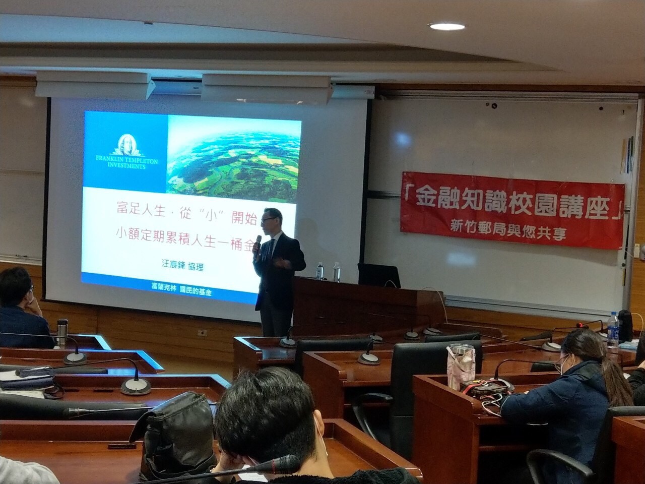 新竹郵局於本(5)日上午9時至12時,假明新科技大學管理學院財務金融系辦理首場「金融知識校園講座」,第2場訂於11月16日假元培醫事大學企業管理系舉辦,共計約200位師生報名。本次講座透過專業講師「富蘭克林證券投資顧問有限公司」資深協理汪宸鋒分享「富足人生,從”小”開始」理財新觀念,讓同學們學會管理財富規劃人生,落實郵局紮根青年的理念。另為因應FinTech金融科技的趨勢來臨,由新豐山崎郵局龔毓晨襄理介紹郵政「數位郵局-闖關雲支付」,邀請師生們響應電子支付推廣活動,透過專業活潑的解說,讓同學們瞭解數位行動支付帶來的好處與便利。