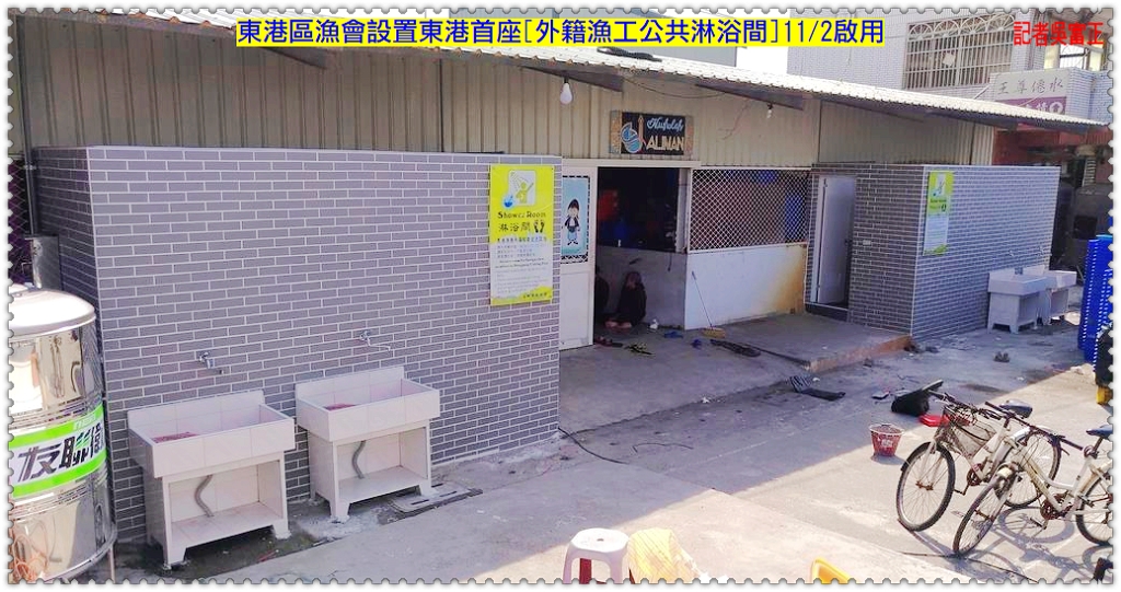 【東港區漁會】為提升對外籍漁工福利照顧及生活需求與品質,營造和諧友善之勞動環境,讓這些長年離鄉背景為台灣漁業發展付出的外籍漁工,像家一樣的溫暖與關懷,能有專屬空間洗熱水澡,設置東港首座外籍漁工公共淋浴間11/2開放啟用;熱水供應時間每日早上9時至晚上9時,附設洗衣台、梳妝鏡,地點位於東港漁港滿豐加油站、水僊尊王廟旁、櫻花蝦產銷班辦公室前方,原是產銷班兩側老舊洗手台拆除整修成5間淋浴間。