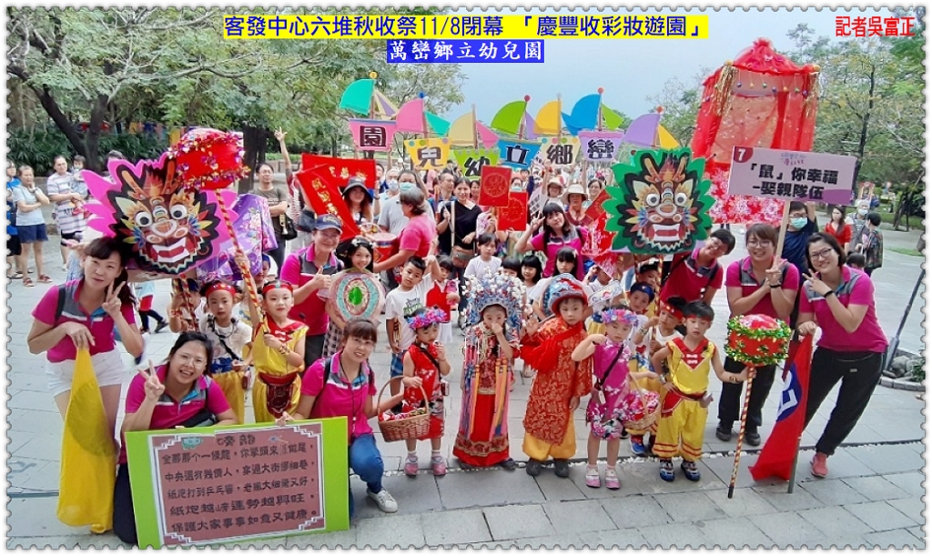 11/8下午「慶豐收彩妝遊園」活動,聚集六堆12鄉區21隊特色團隊及原住民朋友,由六堆客家文化園區好客廣場起沿著迎賓步道至傘架聚落廣場踩街遊行,展現各鄉區特色、技藝、舞蹈、音樂表演與園區民眾齊樂同歡。
