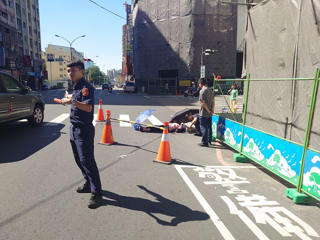 臺中市1名李姓阿嬤(26年次)自家門走路外出,中午行經至臺中市政府警察局第三分局前路口處時突然倒地,因適逢中午用餐時間,該路口來往人車極多,阿嬤突然倒地,嚇壞不少路過民眾,幸正義派出所值班警員楊世郁馬上發現派出所門前異狀,此時分局交通組警員張仲杰、廖昱翔也正好走出分局大門,隨即奔上前查看阿嬤的狀況,幸而李嬤意識尚清楚,警方也協助聯繫救護人員,將其送往醫院進一步檢查。