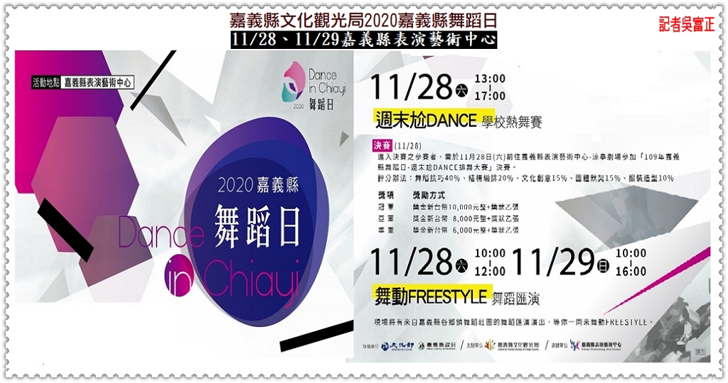 「2020嘉義縣舞蹈日」11/28、11/29於在嘉義縣表演藝術中心熱鬧登場。活動包括三大部分: