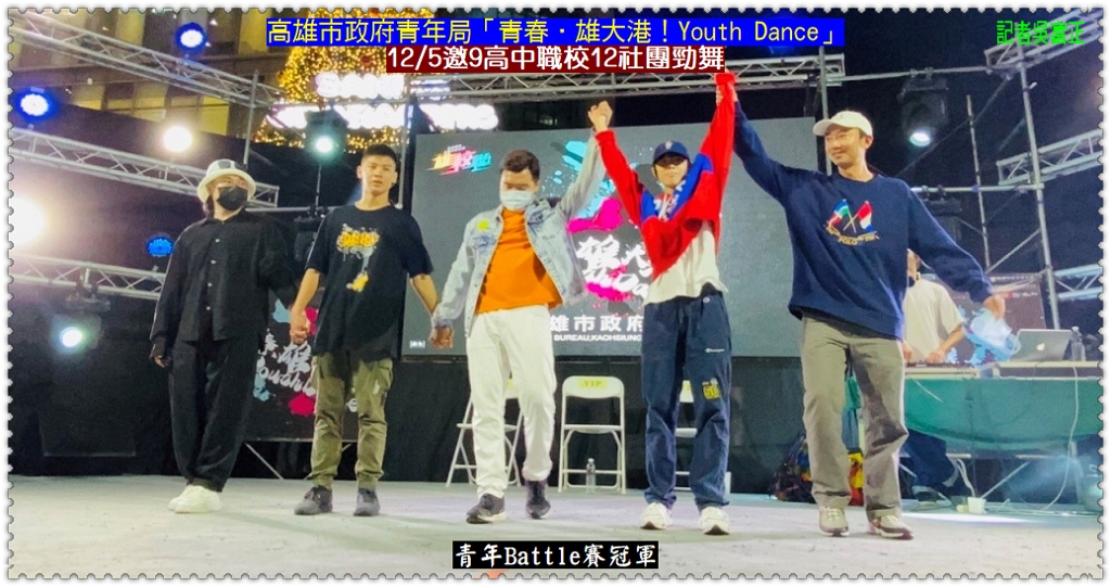 【高雄市政府青年局】12/5發起「青春•雄大港!Youth Dance」熱舞活動,匯集樹德家商、鳳山商工、道明中學、高雄女中、三民家商、高雄中學、三民高中、高雄高工、新莊高中等9所高中職,共12個青年社團於漢神巨蛋戶外廣場齊聚切磋舞藝,帶來精采演出,活動現場湧入超過300名勁舞青年及應援團民眾,許智傑立委、郭建盟議員、范織欽議員、鄭孟洳議員也到場為大家加油,令現場充滿青春活力與熱血。