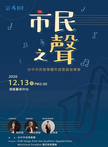 台中市民管樂團市民之聲第四回公演,訂於12月13日(日)下午2:30,在臺中市港區藝術中心舉辦年度聖誕音樂會。