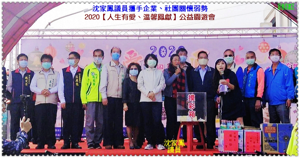 台南市議會沈家鳳議員攜手企業、台南市府各局處關懷弱勢,12/20於柳營區代天院辦理2020【人生有愛、溫馨鳳獻】公益園遊會,除設置特色小吃攤位、在地農產品銷售、小小警察體驗營、兒童迷彩氣墊樂園、在地音樂表演團體義演,並期盼各界的愛心活動,能在聖誕前夕為弱勢家庭送上溫馨氣息。活動邀請陳秋宏議員、台南市府民政局顏振標局長、社會局陳榮枝局長、代天院盧朝仁主委、柳營區汪慶龍區長、新營區魏文貴區長、鹽水區姜家彬區長、台南市府客委會林思伶科長、新榮高中監察人胡學貴出席共襄盛舉。臺南市長黃偉哲夫人劉育菁老師一早就到活動現場,代表市長帶來滿滿的祝福與關懷,也期許各界與企業對於弱勢團體的善行能持續不間斷。