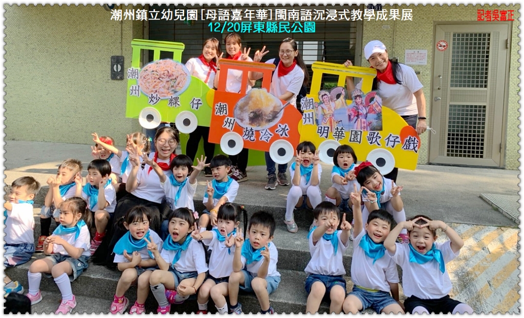 屏東縣政府為鼓勵民眾力行「防疫新生活運動」及行銷屏東縣彩虹自行車道,12/20在屏東縣民公園舉辦「2020齊步GO!親子野餐趣」活動,會場並結合「母語嘉年華」活動,打造處處有母語,大聲講母語的環境,提供閩南語、客家語及原住民族語等,透過遊戲方式鼓勵親子合作闖關,邀請【潮州鎮立幼兒園】等10所學校展演母語沉浸式教學成果及15攤母語關關活動,吸引上千位親子報名參加。