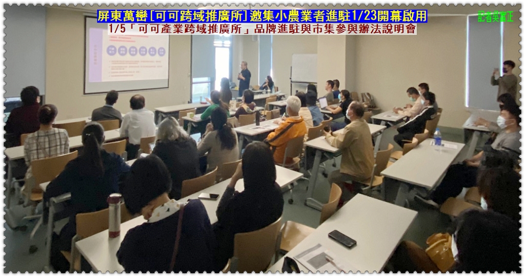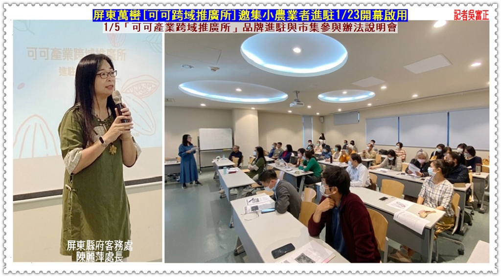 【屏東縣府客務處】為整合場館行銷活動規劃,1/5辦理「可可產業跨域推廣所」品牌進駐與市集參與辦法說明會,說明可可品牌進駐、好物選品及年度主題市集之相關辦法,並透過場館跨域整合之能量打造客庄新焦點。