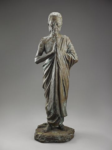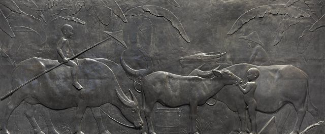 黃土水以人體、人像客觀寫實的再現塑造手法,表現西方古典精神雕塑風格,拉開臺灣新美術運動的序幕。他致力於臺灣風土之美發揚,推動臺灣美術的發展,影響後世深遠。國美館典藏有〈水牛群像〉及〈釋迦出山〉等2件原件翻製作品,其中黃土水最後遺作國寶〈水牛群像〉是以淺浮雕的技法創作大型雕塑,描繪臺灣傳統農村牧童與水牛閒緻之景,常設於國美館大廳,是來館者第一件接觸到的國美館典藏品。黃土水生前為藝術創作謀生,在創作之餘接受許多日本仕紳製作胸像或銅像的委託工作,例如出身佐渡市、與臺灣糖業歷史淵源深厚的政治家山本悌二郎。